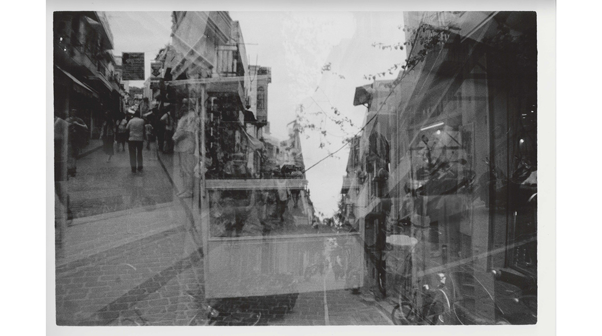 Die Spezialkamera erlaubt es ein Filmnegativ doppelt zu belichten, was überraschende, collageartige und verspielte Effekte ergibt.