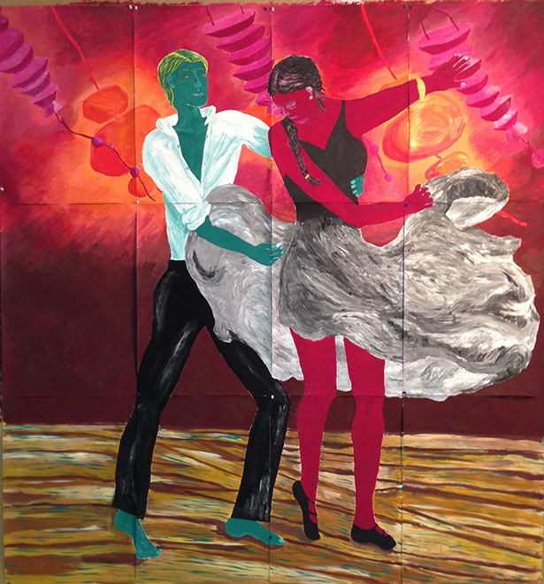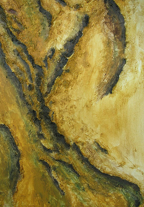 Auf einer heissen Platte werden Wachskreiden während des Malvorganges direkt auf der Leinwand geschmolzen, verstrichen und gemischt. Das Wachs erstarrt bei der Abkühlung und so glänzt die Farbe ganz ohne Firniss.