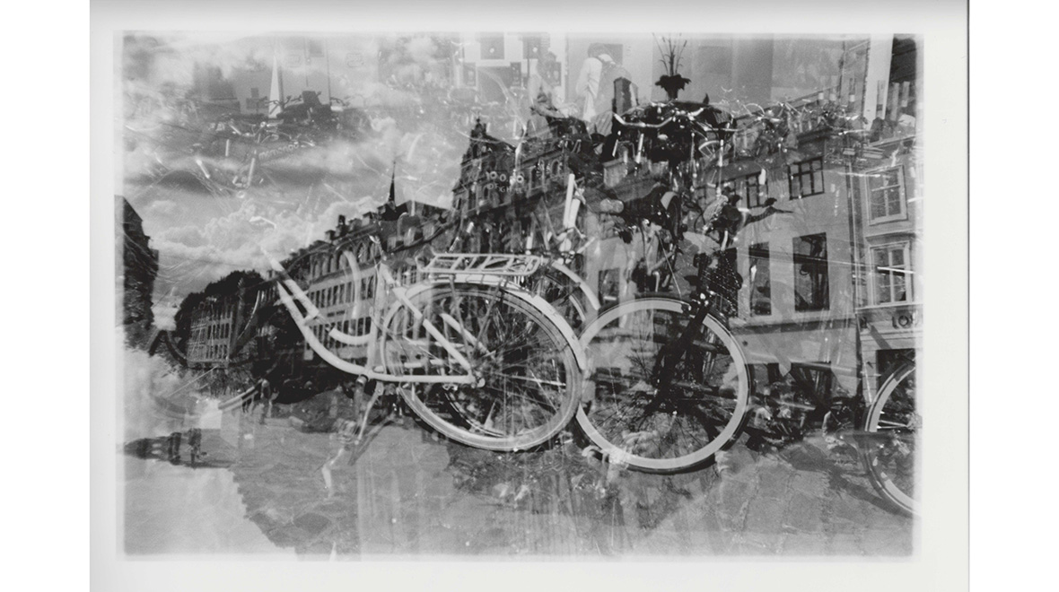 Die Spezialkamera erlaubt es ein Filmnegativ doppelt zu belichten, was überraschende, collageartige und verspielte Effekte ergibt.
