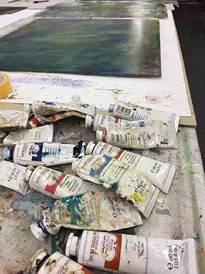 Die gemalten Bilder werden bis zur Bildbesprechung oder nach persönlicher
